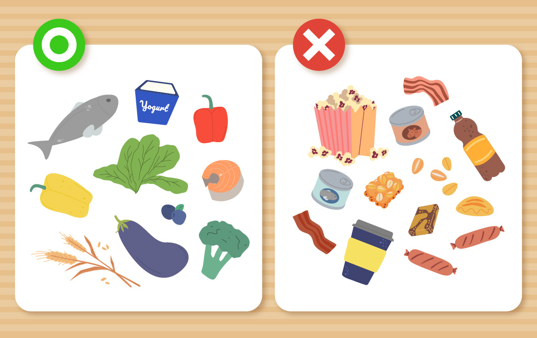 • 多吃: 深海魚、各色蔬菜、全穀類、無糖優格。